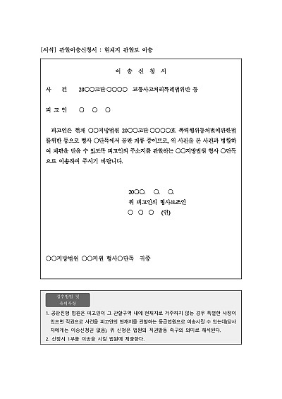 관할이송신청서 : 현재지 관할로 이송 요약정보 및 구매