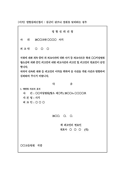 병합심리신청서 : 심급은 같으나 법원을 달리하는 경우 요약정보 및 구매