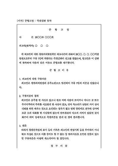 준항고장 : 즉결심판 불복 요약정보 및 구매