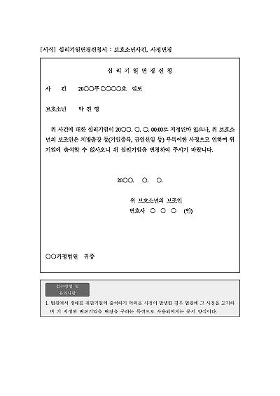 심리기일변경신청서 : 보호소년사건, 사정변경 요약정보 및 구매