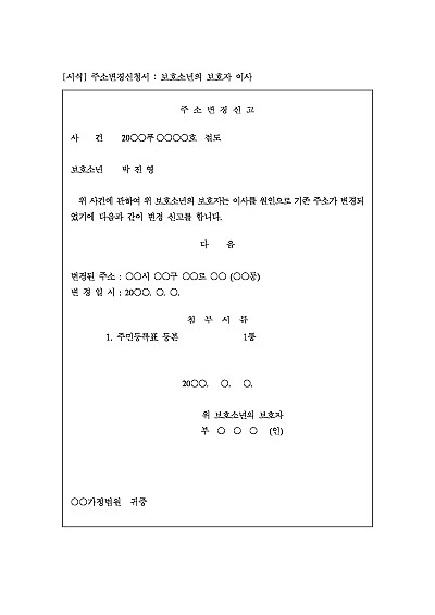 주소변경신청서 : 보호소년의 보호자 이사 요약정보 및 구매