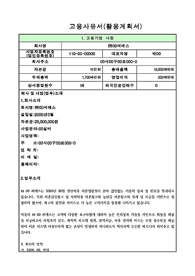 고용사유서(활용계획서) 요약정보 및 구매