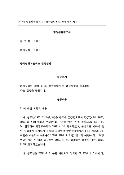 행정심판청구서 : 출국명령취소, 위명여권 행사 요약정보 및 구매