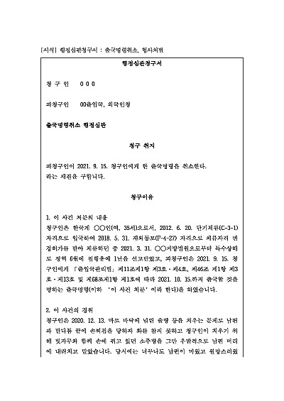행정심판청구서 : 출국명령취소, 형사처벌 요약정보 및 구매