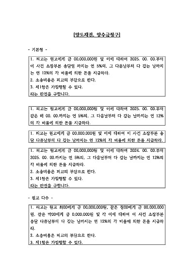 양수금, 양도채권 청구 관련 청구취지 기재례 요약정보 및 구매