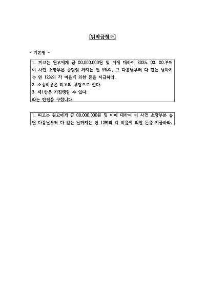 위약금 청구 관련 청구취지 기재례 요약정보 및 구매
