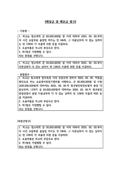 기본형, 중첩청구 등 배당금 및 배분금 관련 청구취지 기재, 단 무단전재 방지목적으로 PDF 파일로 올리니, 혹 원본 파일이 필요하신 분들은 톡이나 문자, 메일, 전화 등을 주시면 작성방법에 대한 간단한 상담과 함께 원본 파일을 보내드