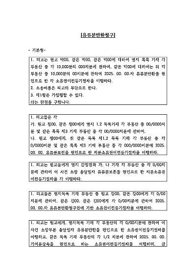유류분반환청구 관련 청구취지 기재례 요약정보 및 구매