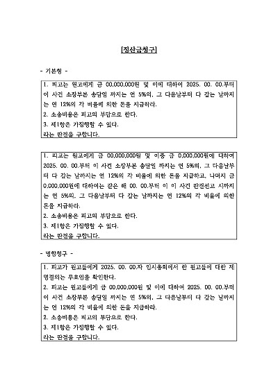 정산금 청구 관련 청구취지 기재례 요약정보 및 구매