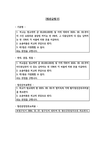 준비하시는 소송 형태에 맞추어 아래의 카테고리를 클릭하시면 원하시는 청구(신청)취지 양식 리스트를 볼 수 있습니다.