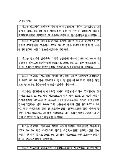 기본형 등 가등기말소 청구 관련 청구취지 기재, 단 무단전재 방지목적으로 PDF 파일로 올리니, 혹 원본 파일이 필요하신 분들은 톡이나 문자, 메일, 전화 등을 주시면 작성방법 등에 대한 간단한 무료상담과 함께 원본 파일을 보내드리도록 하겠습니다.