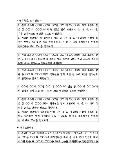 기본형, 경계오류정정 등 경계확정청구 관련 청구취지 기재, 단 무단전재 방지목적으로 PDF 파일로 올리니, 혹 원본 파일이 필요하신 분들은 톡이나 문자, 메일, 전화 등을 주시면 작성방법 등에 대한 간단한 무료상담과 함께 원본 파일을 보내드리도록 하겠습니다.