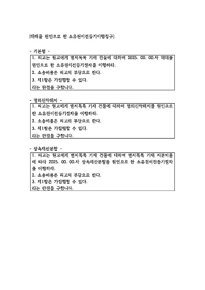 매매를 원인으로 한 소유권이전등기청구 관련 청구취지 기재례 요약정보 및 구매