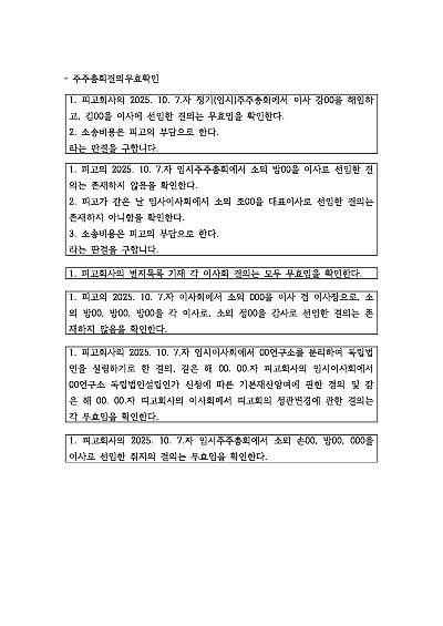 주주총회결의무효확인 관련 청구취지 기재례 요약정보 및 구매