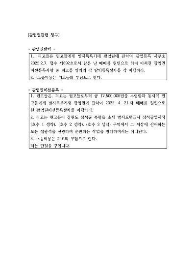 광업권 탈퇴, 광업권 이전 등 광업권 청구 관련 청구취지 기재, 단 무단전재 방지목적으로 PDF 파일로 올리니, 혹 원본 파일이 필요하신 분들은 톡이나 문자, 메일, 전화 등을 주시면 작성방법 등에 대한 간단한 무료상담과 함께 원본 파일을 보내드리도록 하겠습니다.