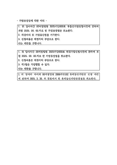 가압류결정에 대한 이의신청 신청취지 기재례 요약정보 및 구매