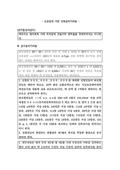 건축금지가처분 등 신청취지 기재례 요약정보 및 구매