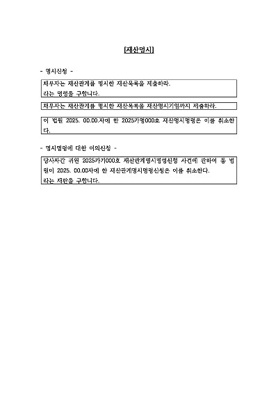 기본형, 등재말소신청 등 채무불이행자명부등재 신청관련 신청취지 기재, 단 무단전재 방지목적으로 PDF 파일로 올리니, 혹 원본 파일이 필요하신 분들은 톡이나 문자, 메일, 전화 등을 주시면 작성방법 등에 대한 간단한 무료상담과 함께 원본 파일을 보내드리도록 하겠습니다.