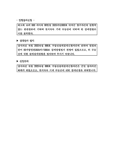 집행불허신청, 경매절차정지신청, 신청취하 등 신청취지 기재, 단 무단전재 방지목적으로 PDF 파일로 올리니, 혹 원본 파일이 필요하신 분들은 톡이나 문자, 메일, 전화 등을 주시면 작성방법 등에 대한 간단한 무료상담과 함께 원본 파일을 보내드리도록 하겠습니다.