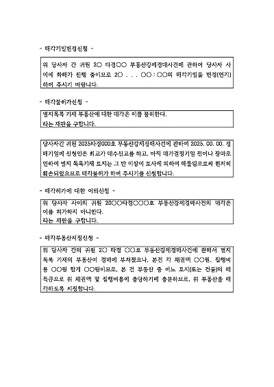 매각기일변경, 매각불허가, 매각허가 이의신청 등 신청취지 기재례 요약정보 및 구매