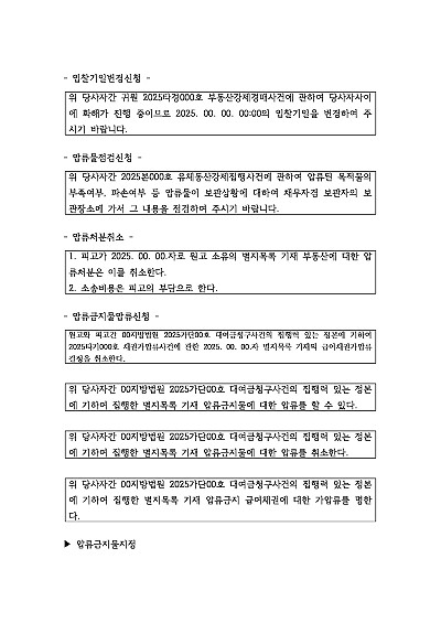 입찰기일 변경 등 경매절차 관련 신청취지 기재례(1) 요약정보 및 구매
