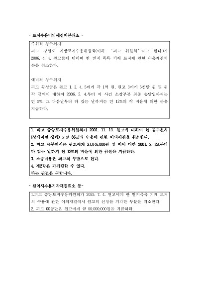 토지수용이의재결처분취소, 잔여지수용기각재결취소 등 사건 신청취지 기재, 단 무단전재 방지목적으로 PDF 파일로 올리니, 혹 원본 파일이 필요하신 분들은 톡이나 문자, 메일, 전화 등을 주시면 작성방법 등에 대한 간단한 무료상담과 함께 원본 파일을 보내드리도록 하겠습니다.