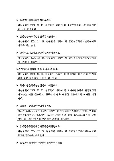 주류도매면허신청반려처분취소, 군인연금복무기간합산거부처분취소, 탈세정보제공자포상금지급거부처분취소, 감사원감사결과에 따른 처분요구 취소, 국가지정문화재현상변경허가처분취소, 고용촉진장려금반환명령등취소, 상이등급구분신체검사등급등외판정취소, 교육훈련위탁대상자증원신청거부처분취소 등 사건 신청취지 기재, 단 무단전재 방지목적으로 PDF 파일로 올리니, 혹 원본 파일이 필요하신 분들은 톡이나 문자, 메일, 전화 등을 주시면 작성방법 등에 대한 간단한 무료상담과 함께 원본 파일을 보내드리도록 하겠습니다.