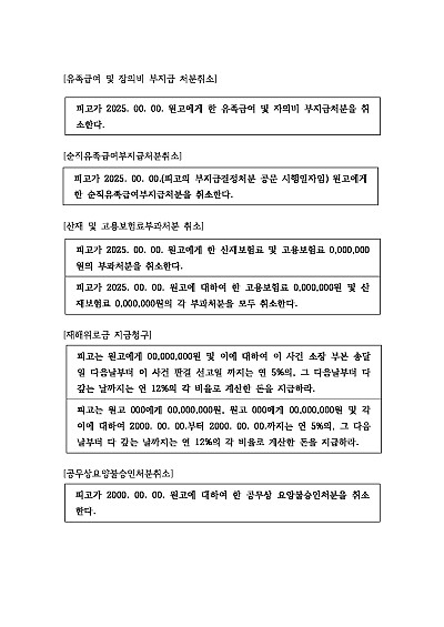 산업재해, 공무상재해, 국가유공자 등 사건 청구취지 기재례 요약정보 및 구매