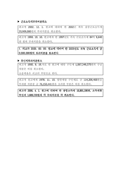 근로소득세, 주민세 등 부과처분취소 사건 청구취지 기재례 요약정보 및 구매