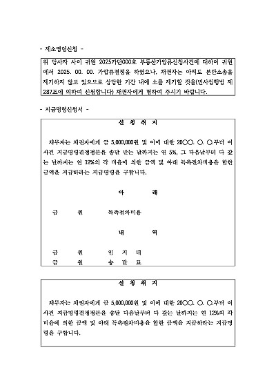 제소명령신청, 지급명령신청 신청취지 기재례 요약정보 및 구매