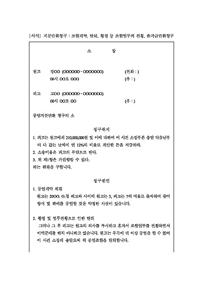 동업지분반환청구의 소 : 동업계약, 횡령 등 조합전횡, 탈퇴, 출자금반환청구 요약정보 및 구매