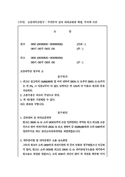 보증채무금청구의 소 : 주채무자 채무불이행, 소제기 승소판결, 무자력, 보증인 상대청구 요약정보 및 구매