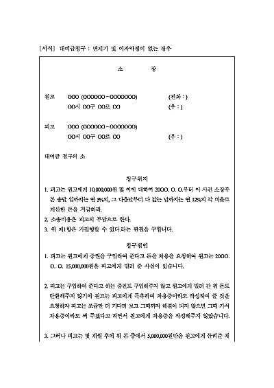 주요내용 : 변제기 및 이자약정 없이 대여, 일부 변제 후 나머지 대여금 차일피일, 독촉 후 그 지급 청구시 사용되어지는 양식임. 단 무단전재 방지목적으로 PDF 파일로 올리니, 구매하신 후 혹 원본 파일이 필요하신 분들은 톡이나 문자, 메일, 전화 등을 주시면 작성방법 등에 대한 간단한 무료상담과 함께 원본 파일을 보내드리도록 하겠습니다.