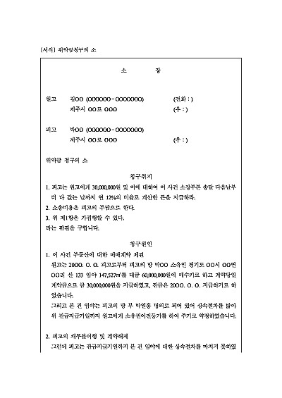 위약금청구의 소 : 계약상 의무 불이행, 계약해제, 위약금 요약정보 및 구매