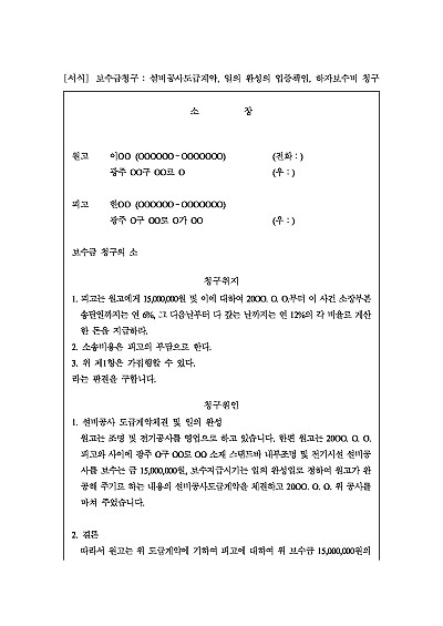 보수금청구의 소 : 공사도급계약, 일의 완성, 대금청구 사건 요약정보 및 구매