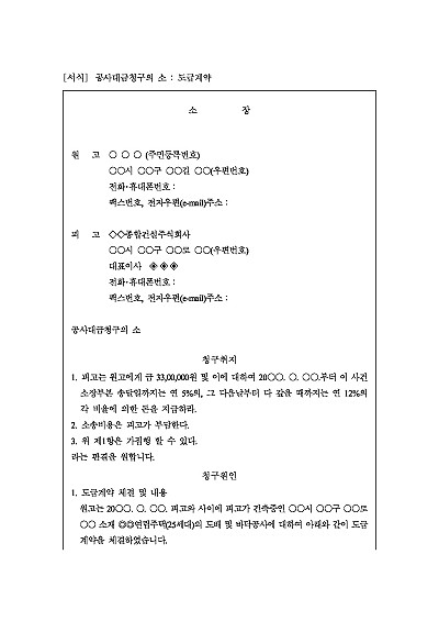 공사대금청구의 소 : 공사완료 후 잔대금 미지급 사건 요약정보 및 구매