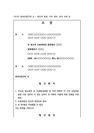 [로펌제작] 대여금청구의 소 – 일반적 형태, 지인 대여, 변제 지체 등 요약정보 및 구매