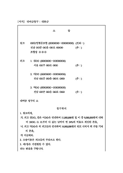 주요내용 : 대출 및 이자약정, 연대보증, 미지급 원리금 발생을 이유로 그 지급을 구하기 위한 소송임. 단 무단전재 방지목적으로 PDF 파일로 올리니, 구매하신 후 혹 원본 파일이 필요하신 분들은 톡이나 문자, 메일, 전화 등을 주시면 작성방법 등에 대한 간단한 무료상담과 함께 원본 파일을 보내드리도록 하겠습니다.