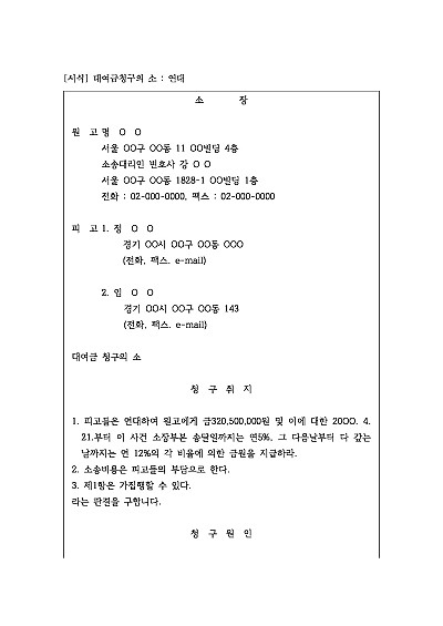 주요내용 : 주채무자가 채무를 변제치 못할 경우, 연대채무자에게 빛을 변제받기 위한 목적으로 사용되어지는 소장 양식임. 단 무단전재 방지목적으로 PDF 파일로 올리니, 구매하신 후 혹 원본 파일이 필요하신 분들은 톡이나 문자, 메일, 전화 등을 주시면 작성방법 등에 대한 간단한 무료상담과 함께 원본 파일을 보내드리도록 하겠습니다.