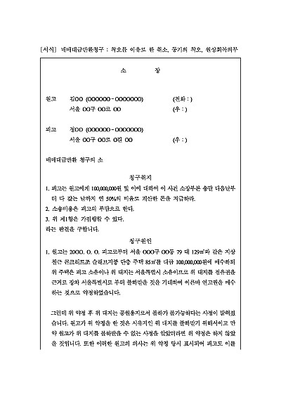 매매대금반환청구의 소 : 착오 취소, 동기의 착오, 원상회복청구 요약정보 및 구매