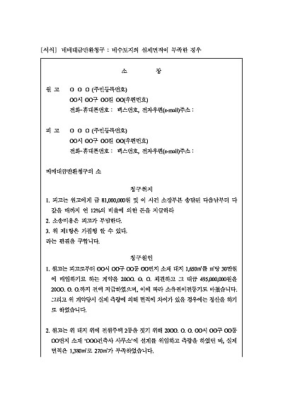 매매대금반환청구의 소 ; 매수토지 면적부족 요약정보 및 구매
