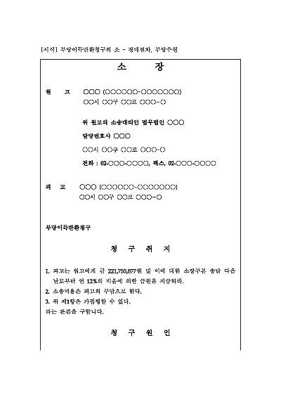 주요내용 : 부당이득금반환청구란 법률상 정당한 이유 없이 타인의 재산이나 노무로 이익을 얻고, 이로 인해 상대방에게 손해를 입힌 경우(민법 제741조) 그 이득을 돌려달라고 요구할 때 사용되어지는 소장 양식임. 단 무단전재 방지 목적으로 PDF 파일로 올리니, 구매하신 후 혹 원본 파일이 필요하신 분들은 톡이나 문자, 메일, 전화 등을 주시면 작성 방법 등에 대한 간단한 무료 상담과 함께 원본 파일을 보내드리도록 하겠습니다.
