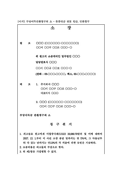 [로펌제작] 부당이득반환청구의 소 – 물품대금 잘못 입금, 반환청구 요약정보 및 구매
