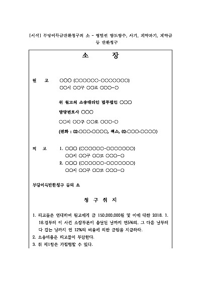 [로펌제작] 부당이득금반환청구의 소 – 사기, 계약파기, 계약금 등 반환청구 요약정보 및 구매