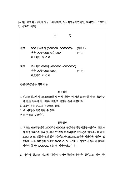 주요내용 : 권원없는 위법배당자를 상대로 배당금 상당의 부당이득의 반환청구시 사용되어지는 양식임. 단 무단전재 방지목적으로 PDF 파일로 올리니, 구매하신 후 혹 원본 파일이 필요하신 분들은 톡이나 문자, 메일, 전화 등을 주시면 작성방법 등에 대한 간단한 무료상담과 함께 원본 파일을 보내드리도록 하겠습니다.