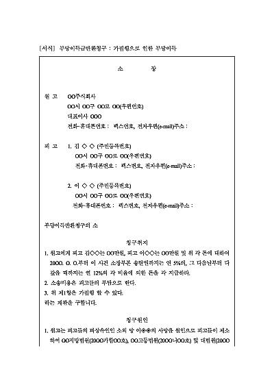 주요내용 : 1심판결 후 판결금 가집행, 그러나 2,3심에서 감액 판결의 확정, 기 집행된 금액 중 감액된 부분 상당 부당이득 반환청구시 사용되어지는 양식임. 단 무단전재 방지목적으로 PDF 파일로 올리니, 구매하신 후 혹 원본 파일이 필요하신 분들은 톡이나 문자, 메일, 전화 등을 주시면 작성방법 등에 대한 간단한 무료상담과 함께 원본 파일을 보내드리도록 하겠습니다.