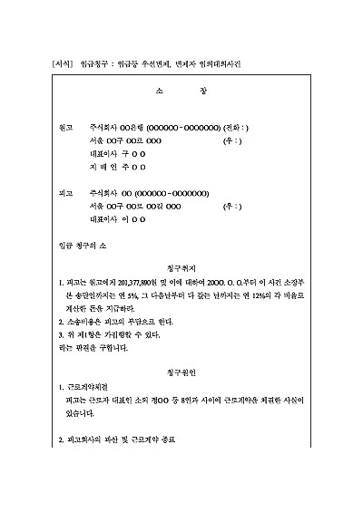 주요내용 : 회사도산, 임금 및 퇴직금 체불, 원고의 대위변제 및 변제사실 통지시, 대위변제 한 임금등 청구시 사용되어지는 양식임. 단 무단전재 방지목적으로 PDF 파일로 올리니, 구매하신 후 혹 원본 파일이 필요하신 분들은 톡이나 문자, 메일, 전화 등을 주시면 작성방법 등에 대한 간단한 무료상담과 함께 원본 파일을 보내드리도록 하겠습니다.