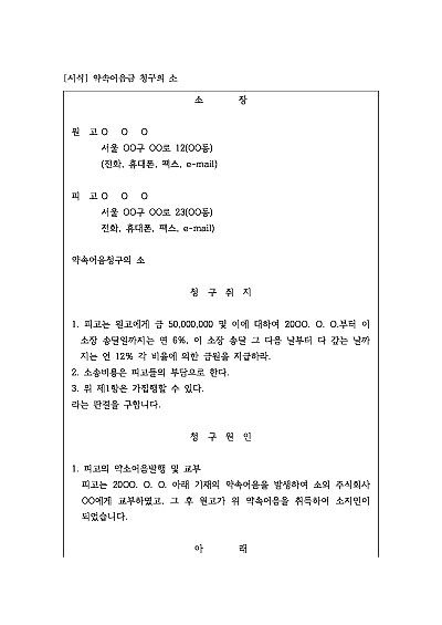 주요내용 약속어음 소지인이 어음 지급기일이 지났음에도 불구하고 지급받지 못한 어음금을 지급받기 위한 목적으로 사용되어지는 소장 양식임단 무단전재 방지목적으로 PDF 파일로 올리니구매하신 후 혹 원본 파일이 필요하신 분들은 톡이나 문자메일전화 등을 주시면 작성방법 등에 대한 간단한 무료상담과 함께 원본 파일을 보내드리도록 하겠습니다.