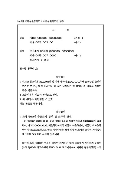 주요내용 : 양도인의 지급제시 도고로 인한 소구권 상실 및 이득상환청구권 발생, 원고에게 이득상환청구권 양도, 발행인에 대한 양도 통지 후 양수인이 그 청구시 사용도어지는 소장 양식임 단 무단전재 방지목적으로 PDF 파일로 올리니, 구매하신 후 혹 원본 파일이 필요하신 분들은 톡이나 문자, 메일, 전화 등을 주시면 작성방법 등에 대한 간단한 무료상담과 함께 원본 파일을 보내드리도록 하겠습니다.