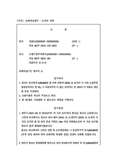 주요내용 : 토지 소유자의 승낙 등 없이, 타인 토지상 토석의 무단 굴취로 인한 손해발생, 이에 따른 손해의 배상을 구하기 위한 목적으로 제기하는 소송 형태임. 단 무단전재 방지목적으로 PDF 파일로 올리니, 구매하신 후 혹 원본 파일이 필요하신 분들은 톡이나 문자, 메일, 전화 등을 주시면 작성방법 등에 대한 간단한 무료상담과 함께 원본 파일을 보내드리도록 하겠습니다.